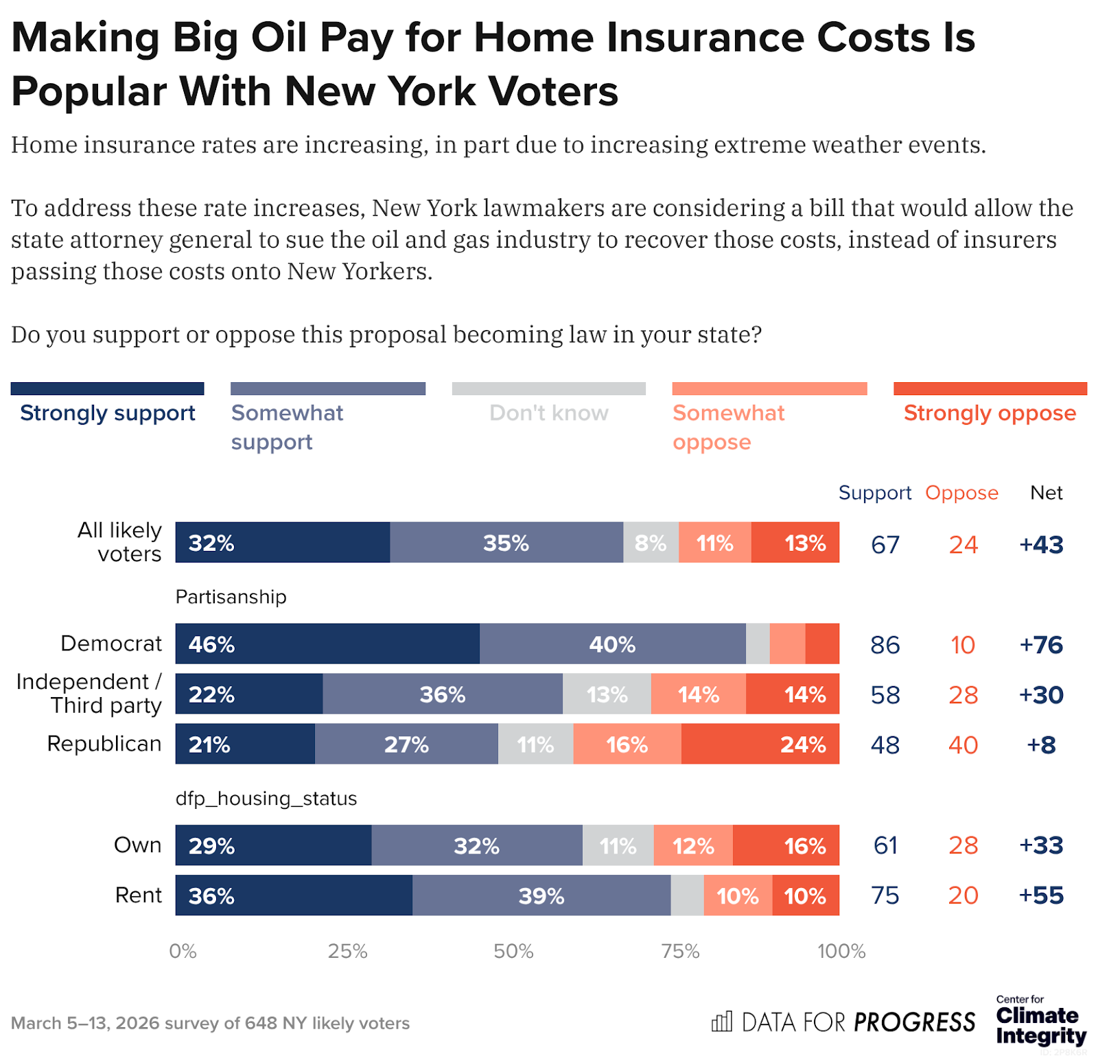 More than two-thirds of New Yorkers support efforts to make Big Oil pay for home insurance costs that are rising as a result of climate disasters, according to a new poll from the Center for Climate Integrity and Data For Progress.